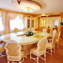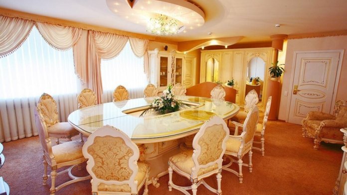 Гостиная апартаментов - презентабельный по формату зал для проведения мероприятий: протокольных мероприятий, переговоров, круглого стола и особых малочисленных семинарных встреч, рассчитанных на количество приглашённых персон до 12-16 человек.