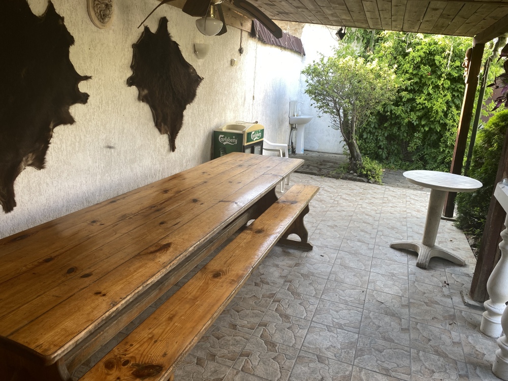 В доме 4 изолированные спальни + гостиная и кухня. тихий уютный двор, навес с барбекю и декоративным водопадом.