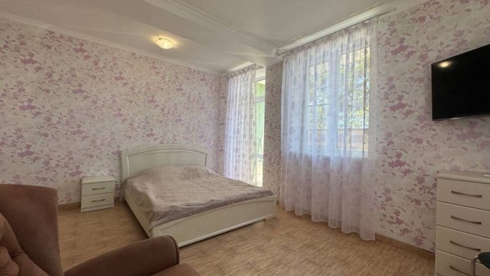 Все номера имеют отдельный вход, оснащены всей необходимой бытовой техникой, в каждом номере своя кухня, санузел. Номера однокомнатные, двухкомнатные. Двор просторный, есть зоны отдыха с мангалом, своя парковка.