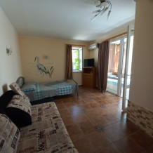 В апартаменте есть все необходимое для комфортного отдыха: своя личная оборудованная кухня (СВЧ-печь, плита индукционная, холодильник) телевизор, кондиционер, свой личный санузел, холодная и горячая вода круглосуточно, постельное белье, размещение до 6 человек.