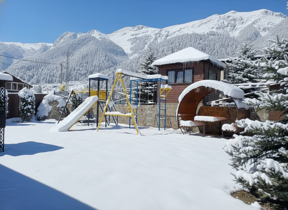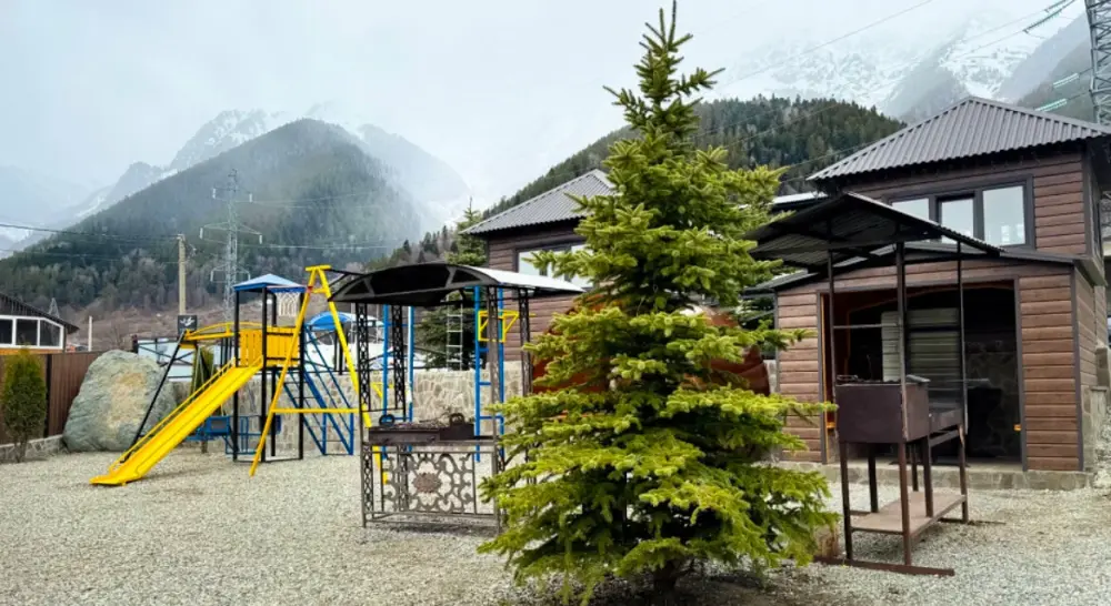 Гостевой дом «Амир» в центре Архыза. В пешей доступности, 8 минут, находится вся инфраструктура поселка: магазины, кафе, аптеки и мини-рынок где Вы можете заказать экскурсии на джипе, квадроциклах и конные прогулки, а также спуск к реке.