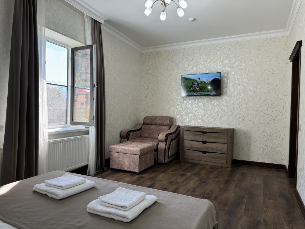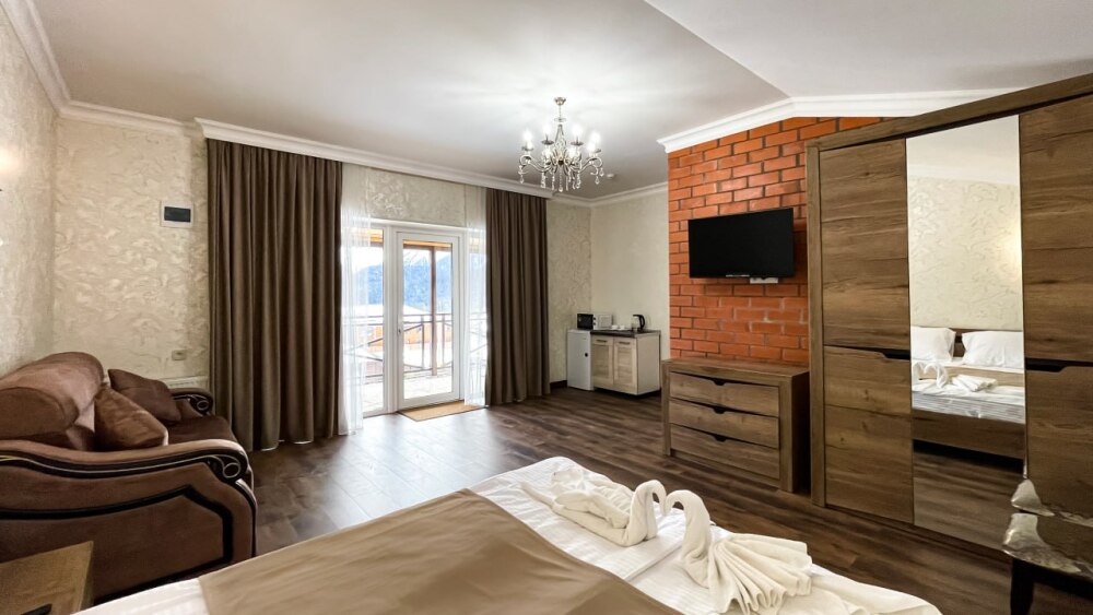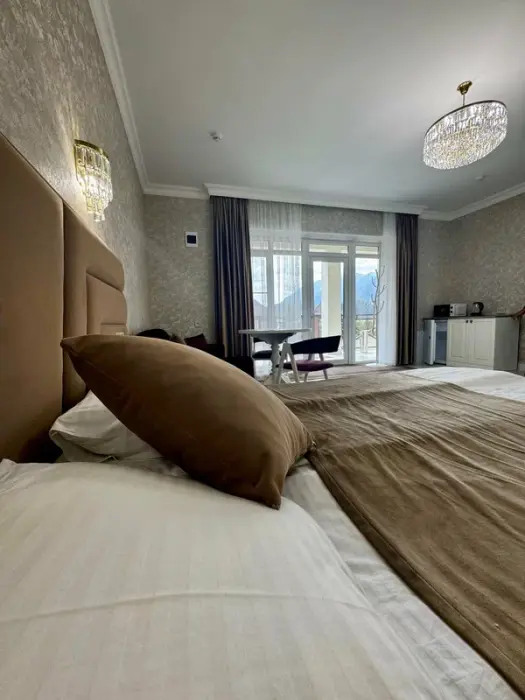 Мы предлагаем Вашему выбору комфортабельные номера с шикарными видами на горы.