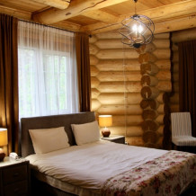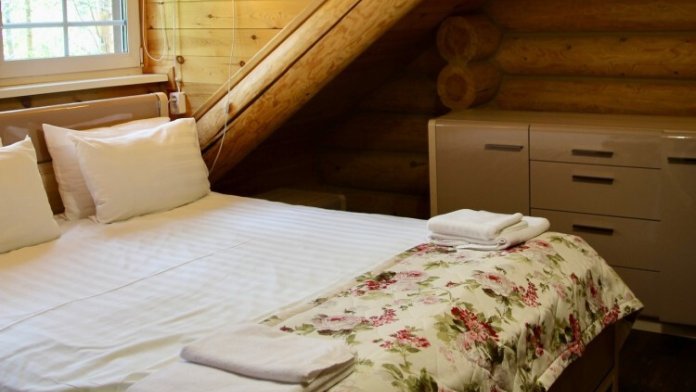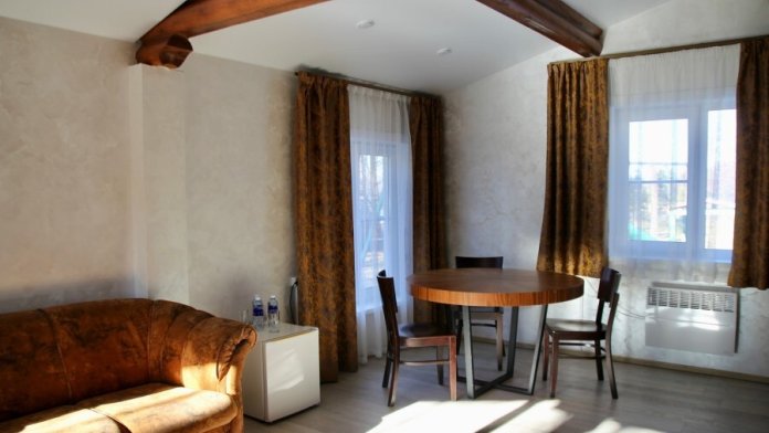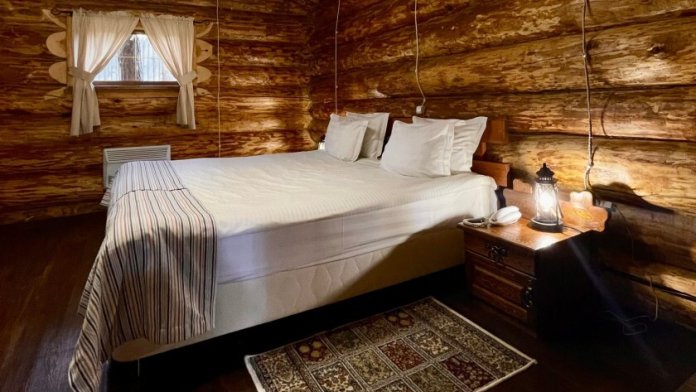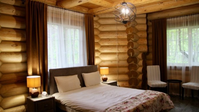 Весь номерной фонд выполнен из сибирской сосны в традициях русского деревянного дома.