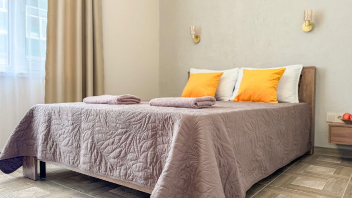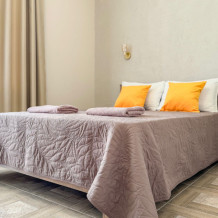 Комфортабельный номер с одной двуспальной кроватью и диваном-кроватью, предназначенный для размещения трех человек. Номер оснащен сплит-системой, смарт ЖК ТВ 37 дюймов, СВЧ-печью, холодильником, чайником. Большой санузел с душем.