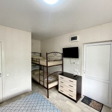 В номерном фонде нашего отеля преобладают 1-комнатные номера «Апартаменты» и «Семейный», рассчитанные на проживание до 4-х человек в комнате, а также имеются 3-комнатные номера «Люкс», где могут комфортно разместиться 6 человек. Все номера оборудованы всем необходимым для комфортного отдыха. Гарантирована регулярная уборка в номерах, смена полотенец и постельного белья осуществляется либо по запросу гостей, либо 1 раз в 3 дня.