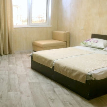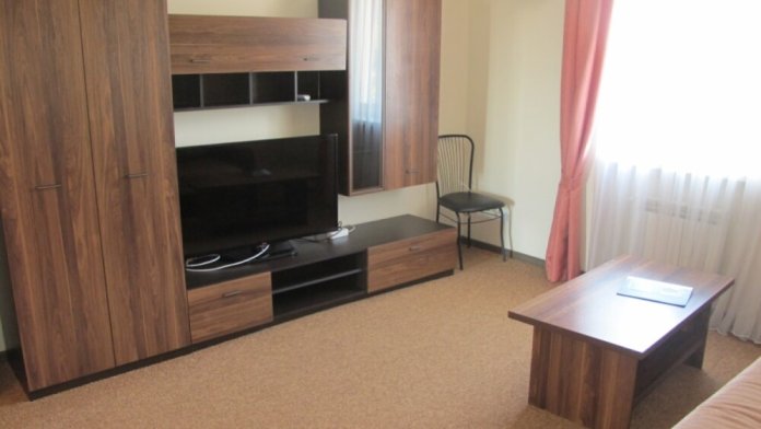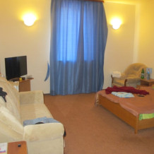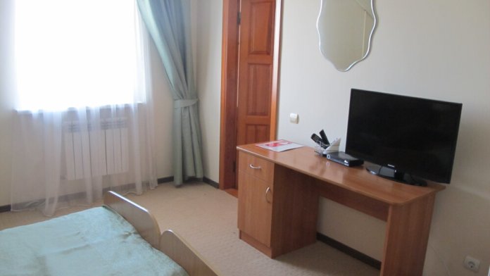 Номер в новом корпусе, состоящий из одной жилой комнаты с 2-местной кроватью и кресло-кровать, ванная, с полным санузлом (душ, умывальник, унитаз), рассчитанный на проживание трех человек.