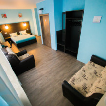 Сняв четырехместный номер «Семейный» вы сможете отдохнуть в мини-отеле вместе с детьми. Благодаря большому пространству и наличию дополнительных спальных мест вы не будете испытывать дискомфорт.