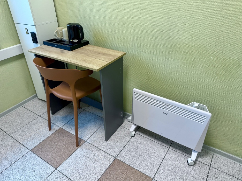 Одноместная отдельная комната с односпальной кроватью с электронным замком. Постельное х/б белье и банное полотенце включено в стоимость и уже заправлено. Бесплатно: вай-фай, питьевая вода, парковка. В общей зоне есть кухня со всем необходимым для приготовления пищи, холодильник, электроплита. Продуктовый магазин через дорогу, можно приготовить завтрак .Так же рядом недорогое кафе. Остановки в центр города и в аэропорт в 100 метрах. До электрички к морю пешком 7 минут, можно на экспрессе доехать за 15 минут.