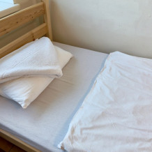 Трёхместная комната с односпальной кроватью и двухъярусной кроватью с электронным замком площадью 15 кв.м. для семейной пары или Вас и ваших спутников. Постельное х/б белье и банное полотенце включено в стоимость и уже заправлено.