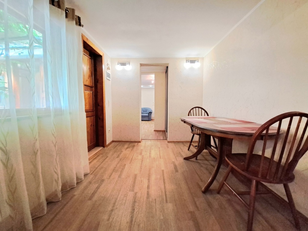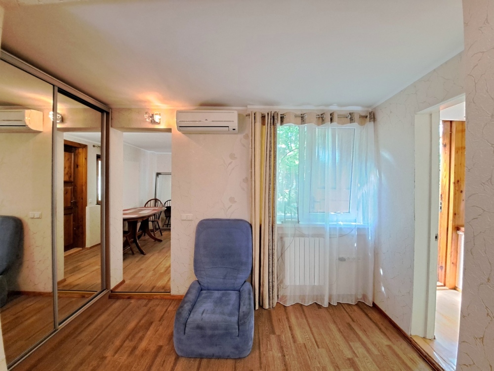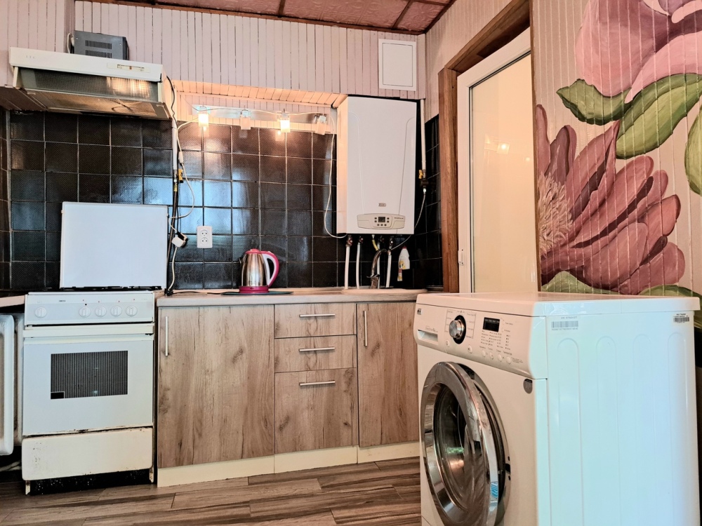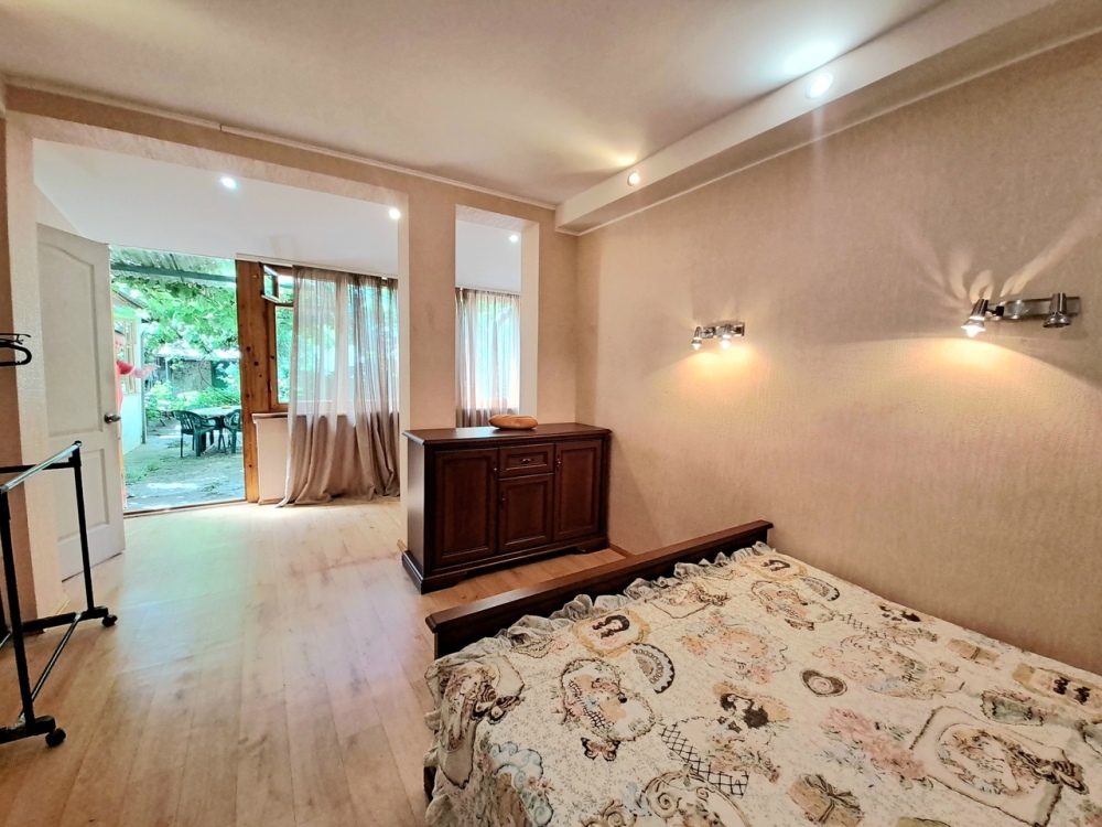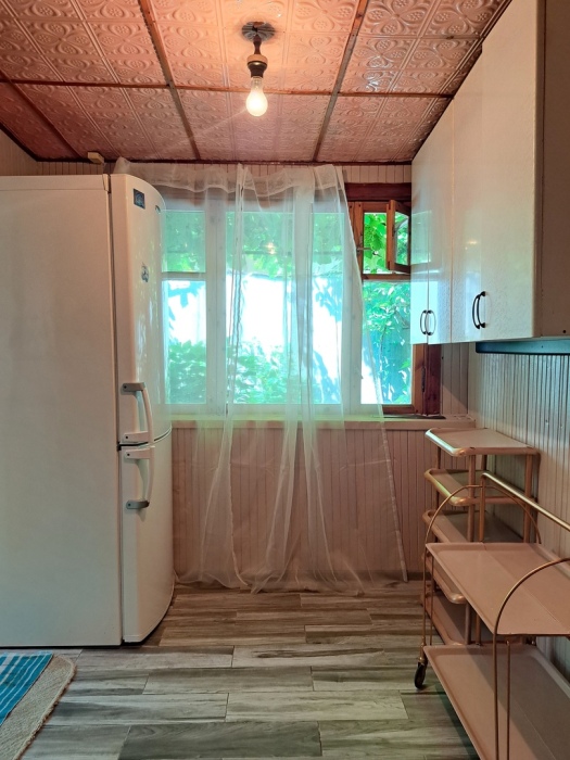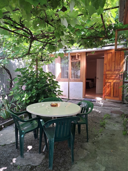 В доме 2 смежно-раздельные комнаты, т.е. из одной можно пройти в другую, в то же время из спальни есть выход во двор, минуя зал. При входе в дом Вы попадаете в кухню, отсюда же вход в санузел с ванной. Есть интернет, кондиционер, комплекты постельного белья и полотенца. Между комнатами есть дверь. По спальным местам: двуспальная кровать, двуспальный диван и раздвижной кресло-диван для 1 человека.