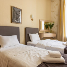 - Дополнительное спальное место - раскладная кровать, предоставляется по запросу и при наличии возможности за дополнительную плату: с 01.04 по 30.09 и с 29.12 по 08.01 размер доплаты составляет 1300 руб. в сутки, в остальные даты дополнительная кровать предоставляется бесплатно.