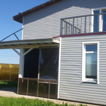 Большой, новый, комфортный дом с четырьмя спальнями и кухней-гостиной с диваном. Дом спокойно вместит в себя до 10 взрослых людей. В доме 4 спальни, гостиная с двуспальным диваном, кухня, санузел с ванной, терраса с мангалом и большой балкон. Все комнаты с телевизорами и постельным бельём. На кухне Вы найдете всё для приготовления пищи, есть плита, микроволновая печь, необходимая посуда посуда и посудомоечная машина. На первом этаже везде теплый пол. Комфортно будет с детьми. Для малышей есть детская кроватка, стульчик для кормления и шезлонг-качалка. Также, к услугам гостей отпариватель, фен, настольные игры, фильтрованная вода. В нашем комфортном доме Вас ждет все необходимое для отдыха.