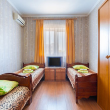 Номер «Божья коровка» - назван из-за постельного белья в номере, имеющим силуэты божьей коровки. В номере 3 раздельные полуторные кровати, выполненные из дуба. Одно из преимуществ, номер находится на 1-м этаже. Душ и туалет общие на два номера, на этаже.