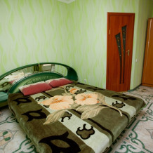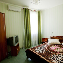 Номер «Царица» - шикарный, просторный номер, дизайн выполнен со вкусом, сами хозяева декорировали этот номер. Получил название «Царица» за оформление. Особенности: находится на 2-м этаже, имеет 2 больших окна и собственный балкон, где можно посидеть за столиком и полюбоваться садом. Большой холодильник и жк телевизор, чайник сделают проживание ещё более комфортным. Номер семейный говорит сам за себя. Часто бывает на стопе, бронировать рекомендуем заранее.