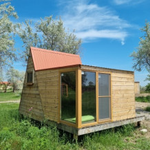 Уютный домик 35 кв.м: 1 спальная комната с 2 кроватями (0,9м), уютная гостиная студия: диван (двуспальный), телевизор, мини кухня: холодильник, микроволновая печь, электрическая плитка, электрический чайник, мойка. Сан.узел с душем.