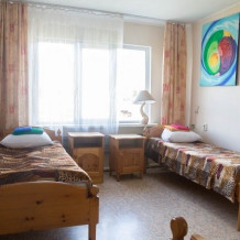 Двухместные комнаты эконом-класса расположены на цокольном этаже гостевого дома. Два варианта комнат: с односпальными кедровыми кроватями и двуспальным раскладным диваном. Белое белье, полотенце. Полки для одежды, тумбочки, раковина, стол. Туалет, душ - на этаже. В комнате небольшое окно. Стены украшены картинами американской художницы К.Хилтон. Можно воспользоваться общей кухней или заказать питание.
