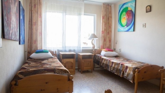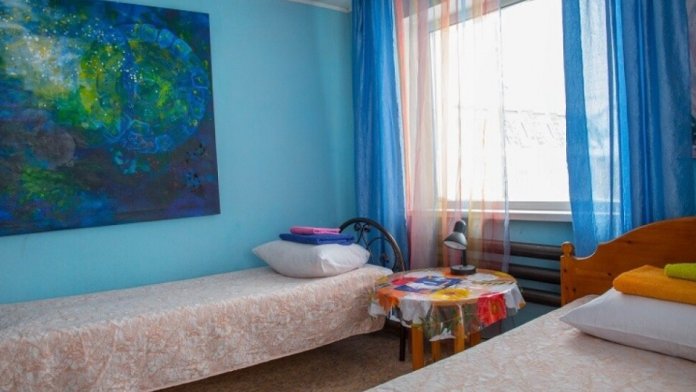 Двухместный номер класса эконом расположен на первом этаже гостевого дома. В комнате две кедровые кровати, белое белье, полотенца. Тумбочка и полки для одежды, стол. Туалет, душ — на этаже. Стены украшены картинами американской художницы К.Хилтон. Можно воспользоваться общей кухней или заказать питание.