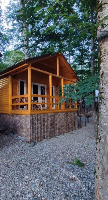 К услугам гостей 2,4 и 6-местные деревянные дома. В номерах с тёплым полом имеются полностью оборудованная мини-кухня с микроволновой печью, холодильником, плитой, чайником, обеденной зоной, телевизором со спутниковым ТВ, а также есть собственная ванная комната с душем и аксессуарами. При каждом доме терраса, с которой гости могут любоваться красивыми видами.