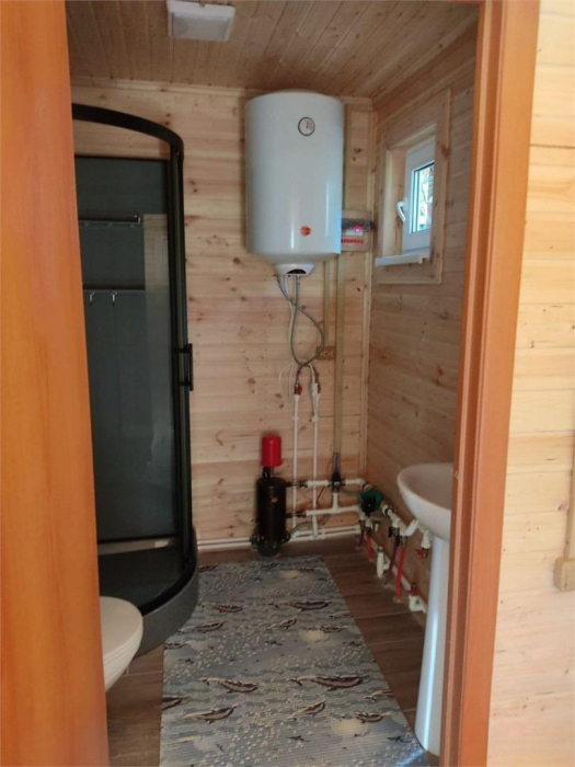В доме с тёплым полом есть полностью оборудованная мини-кухня с микроволновой печью и плитой.