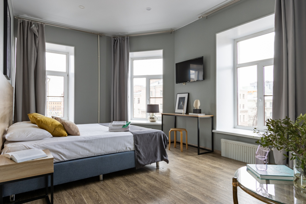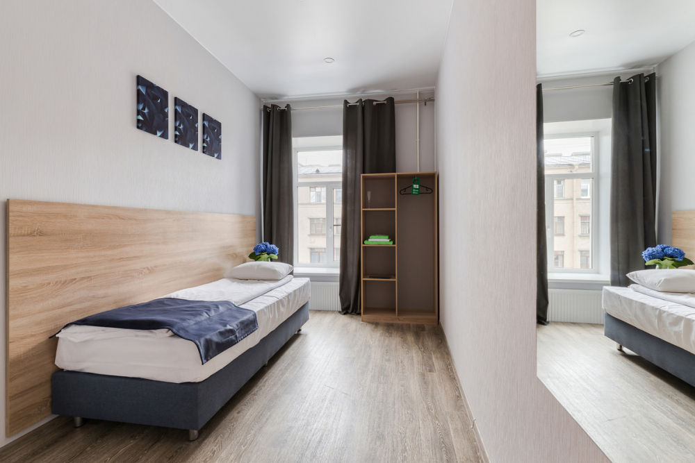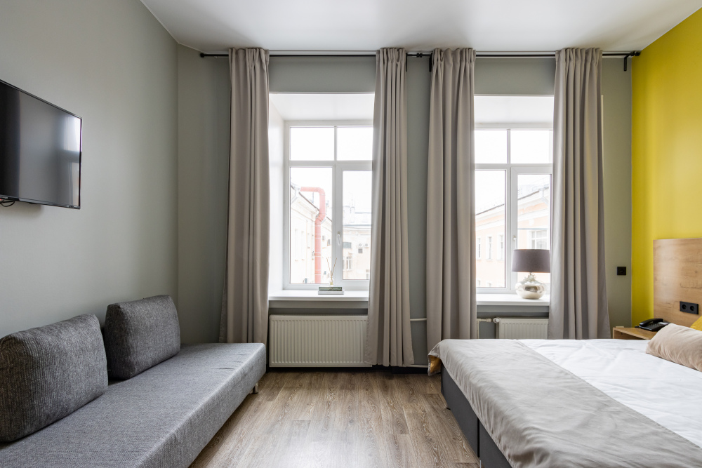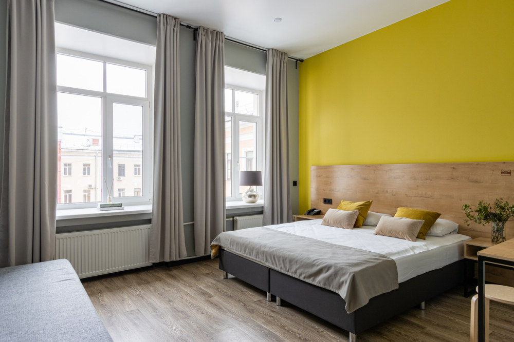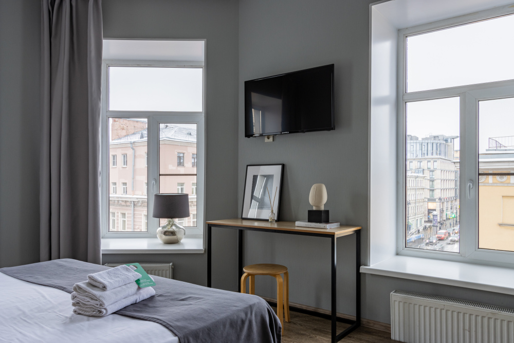 Есть варианты размещения с окнами на Невский проспект, Полтавскую улицу, а также во двор.