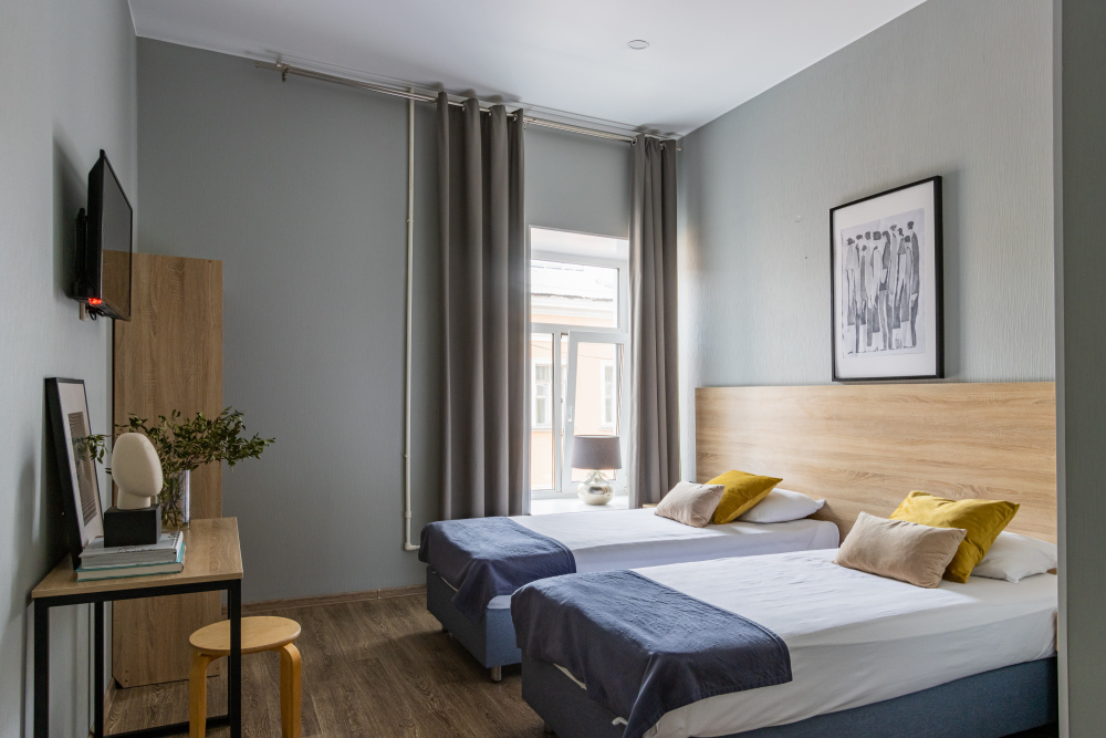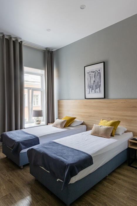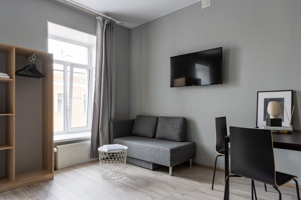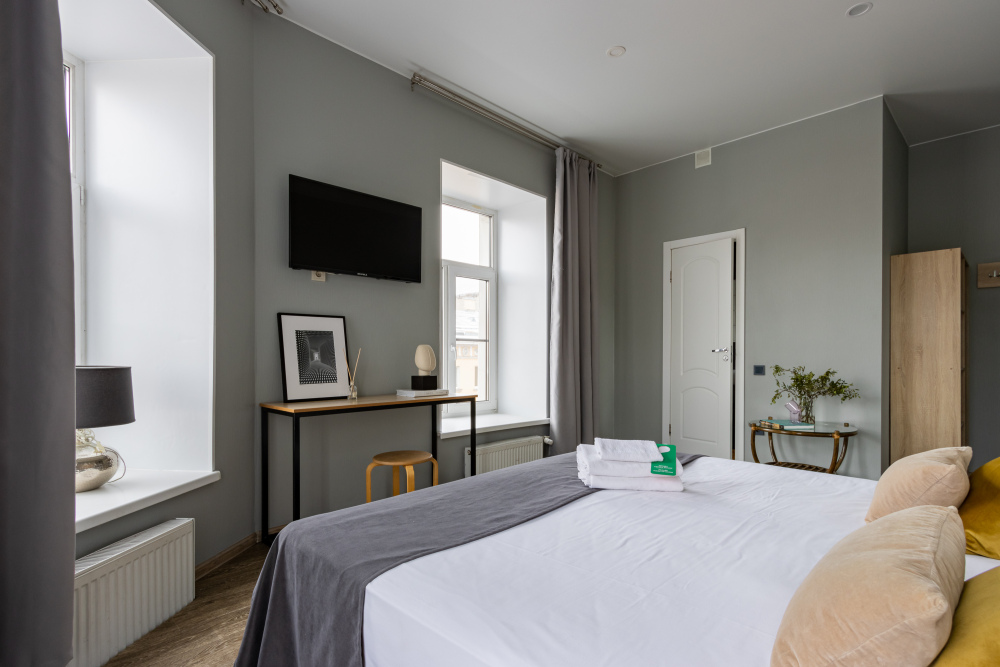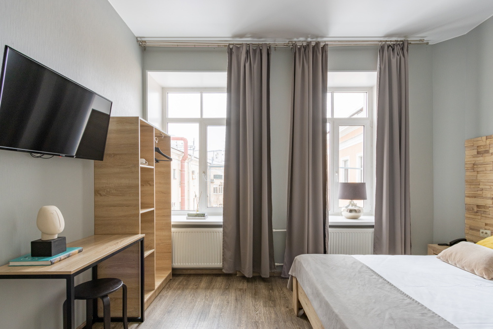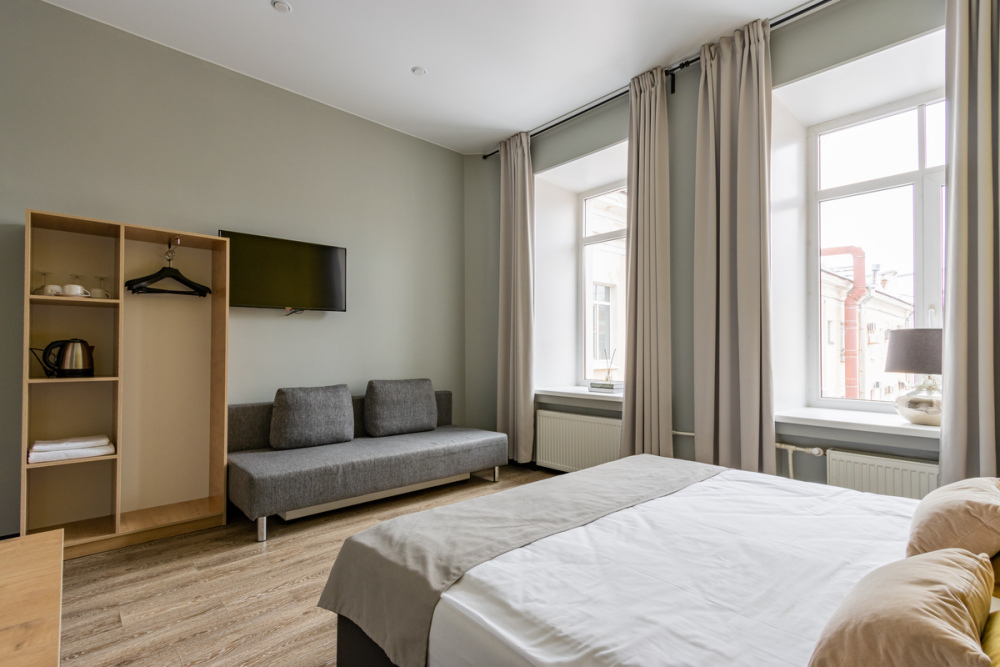 Есть варианты размещения с окнами на Невский проспект, Полтавскую улицу, а также во двор.