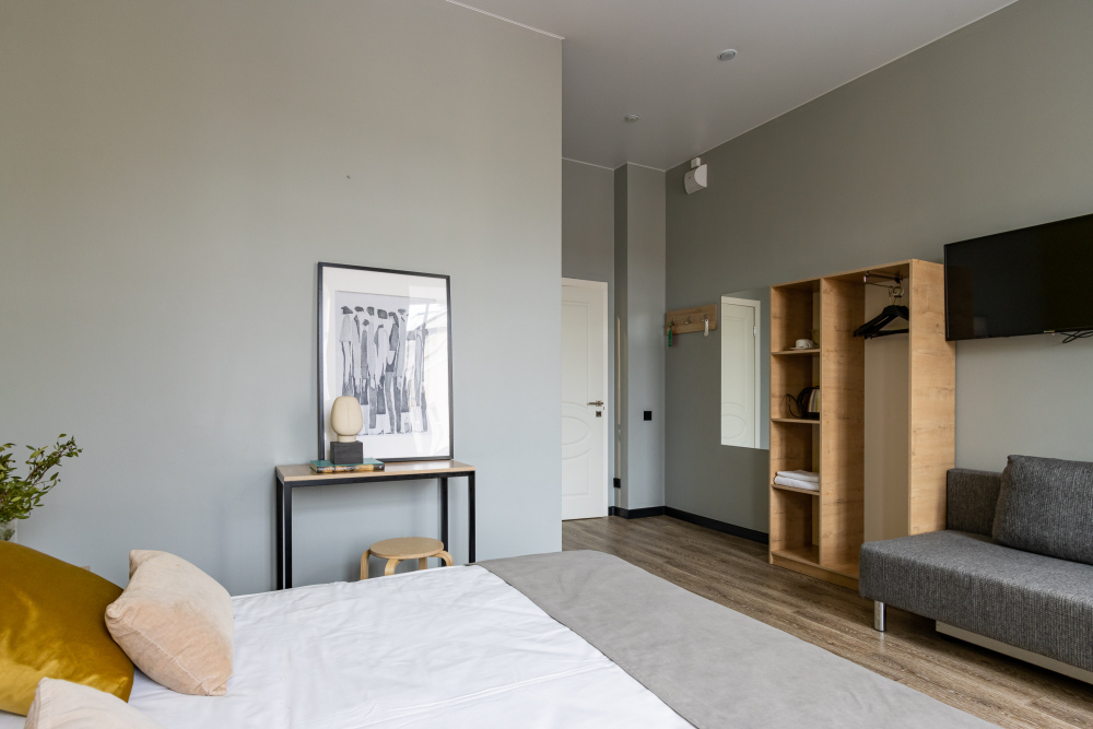 - Дополнительное спальное место - раскладная кровать, предоставляется по запросу и при наличии возможности за дополнительную плату: с 01.04 по 30.09 и с 29.12 по 08.01 размер доплаты составляет 1300 руб. сутки, в остальные даты дополнительная кровать предоставляется бесплатно.
