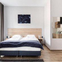- Возможно предоставление детской кровати в качестве дополнительного спального места. Дети в возрасте от 0 до 7 лет включительно размещаются бесплатно.
