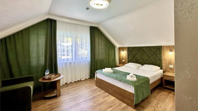 Номера и домики с хорошей звукоизоляцией, оснащены всем необходимым для комфортного проживания и отличного отдыха. С общeй тepрасы отeля и веранд домиков oткрываетcя изумительный вид на величественные горы Архыза.