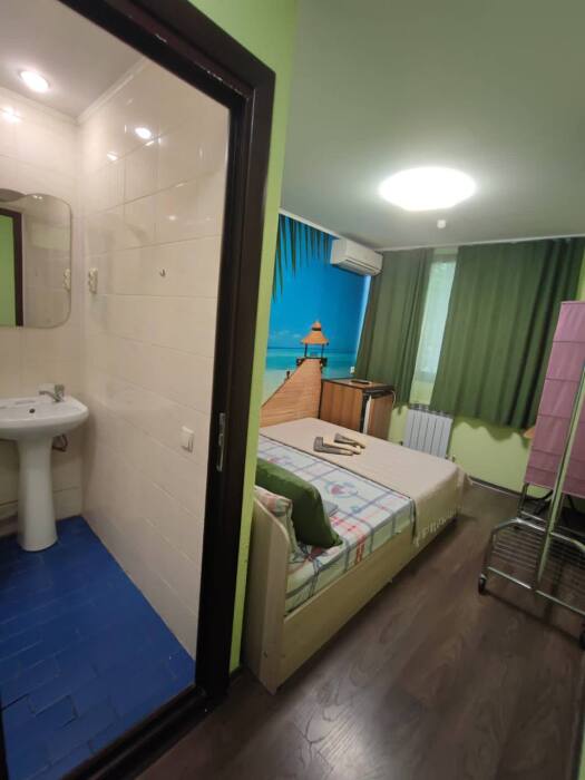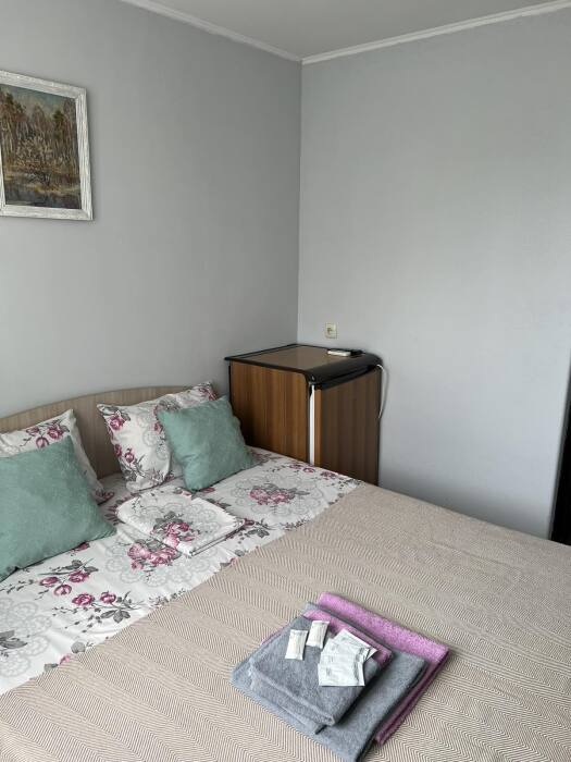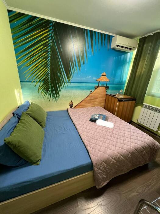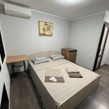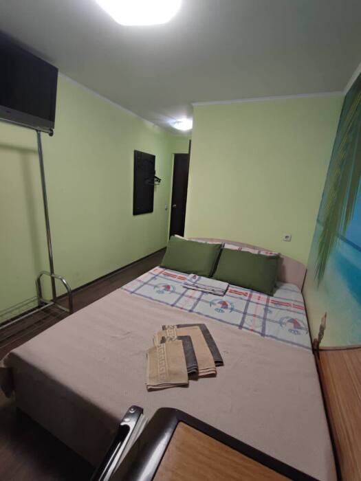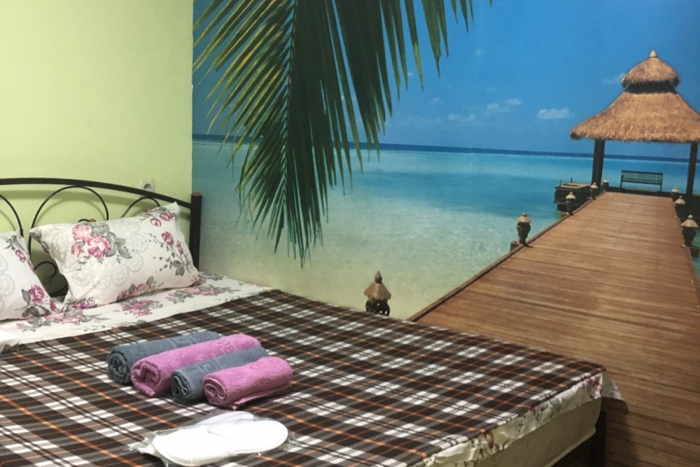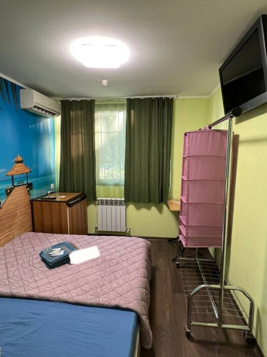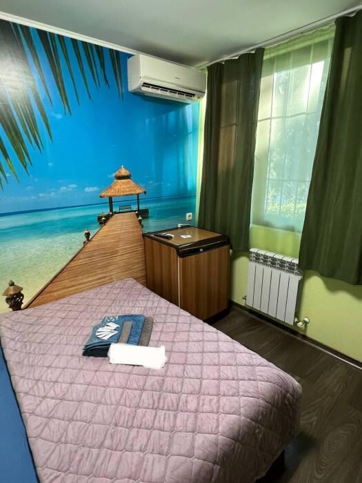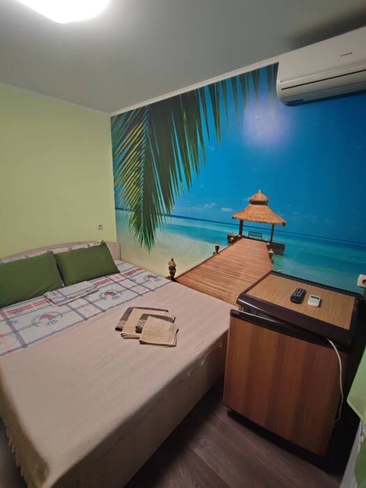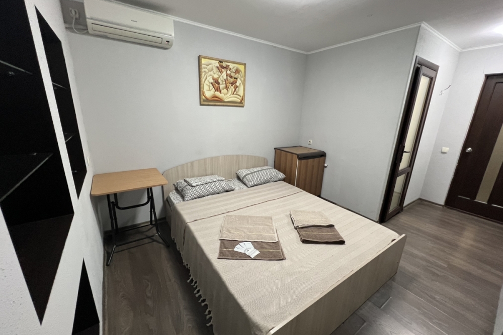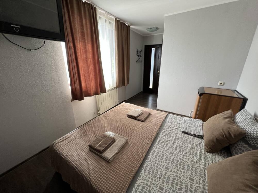 Номер «Стандарт» с двуспальной кроватью,телевизором ,кондиционером, ванной комнатой, с видом на море. Гостевые номера расположены в 5 минуте от пляжа и набережной, в непосредственной близости от парка. Все развлечения в шаговой доступности. Тихое и уютное место для идеального отдыха. Общая кухня со всем необходимым набором посуды для приготовления пищи.