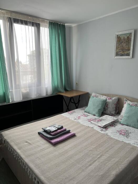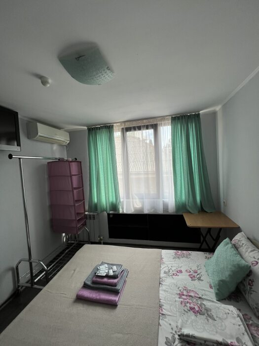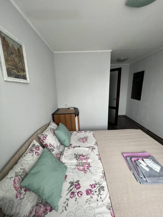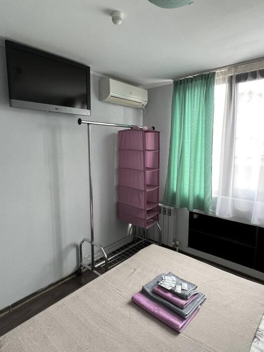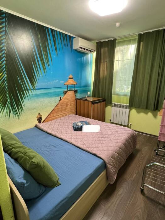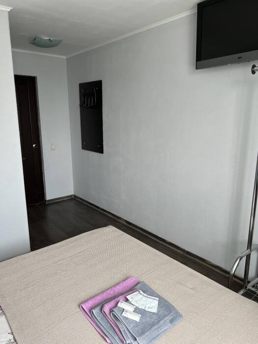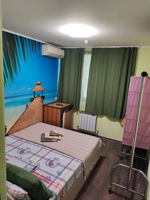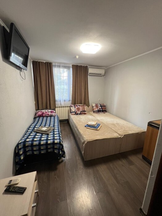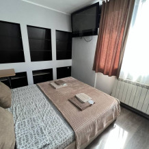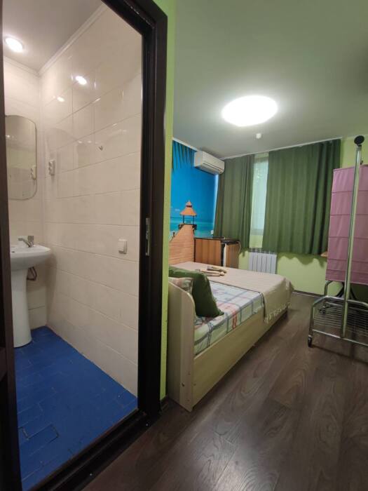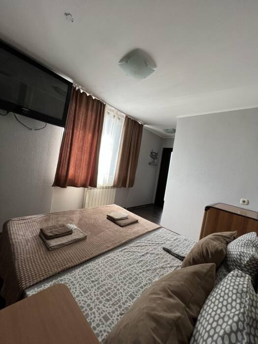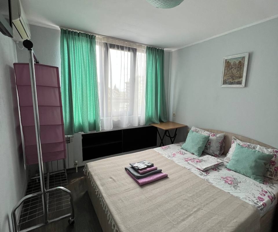 Номер «Стандарт» с двуспальной кроватью,телевизором ,кондиционером, ванной комнатой, с видом на море. Гостевые номера расположены в 5 минуте от пляжа и набережной, в непосредственной близости от парка. Все развлечения в шаговой доступности. Тихое и уютное место для идеального отдыха. Общая кухня со всем необходимым набором посуды для приготовления пищи.