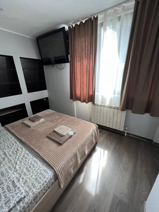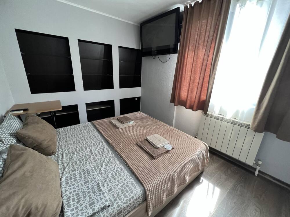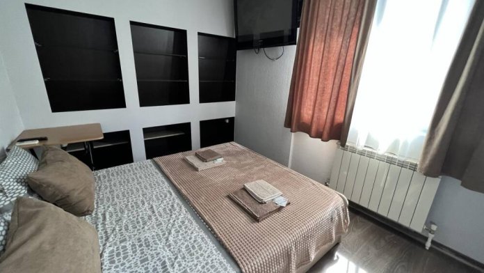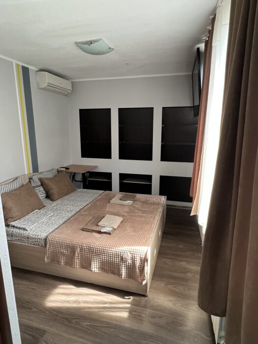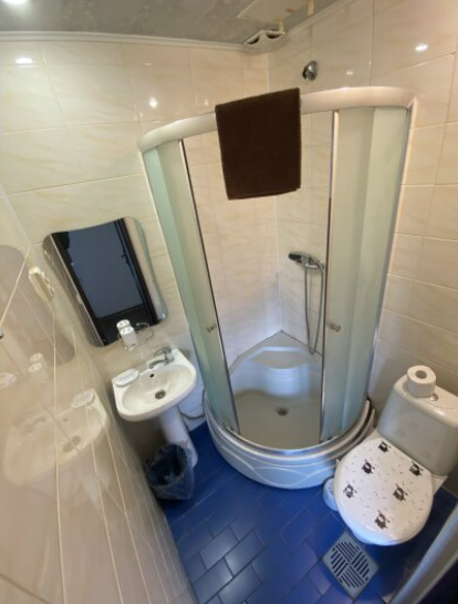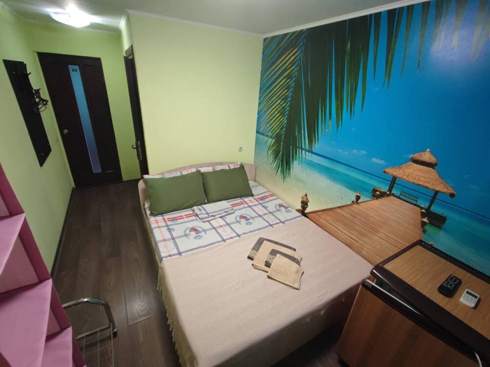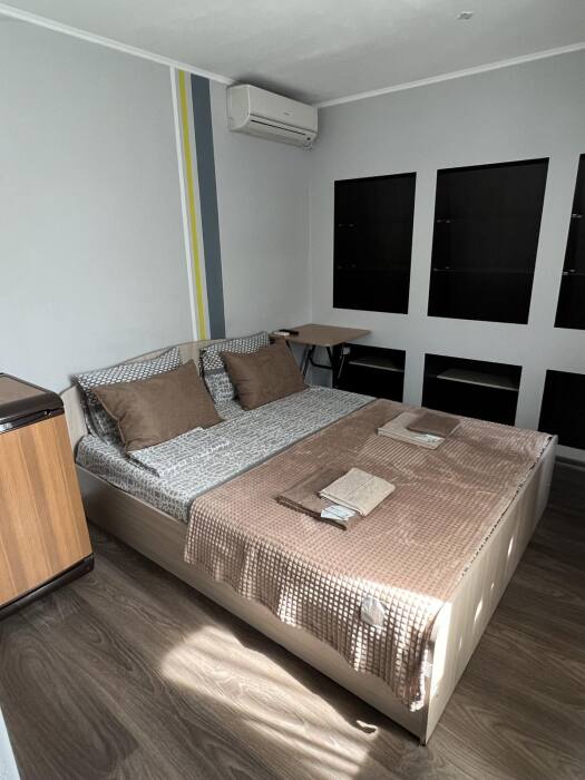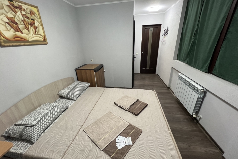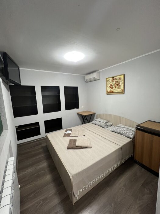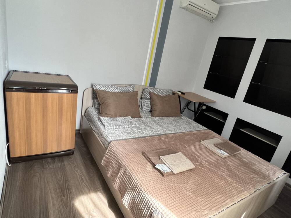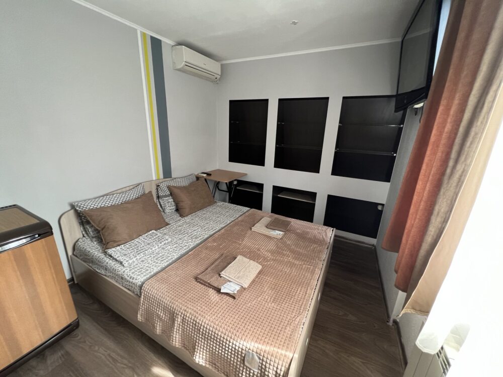 Номер «Стандарт» с двуспальной кроватью, телевизором ,кондиционером, холодильником и ванной комнатой.