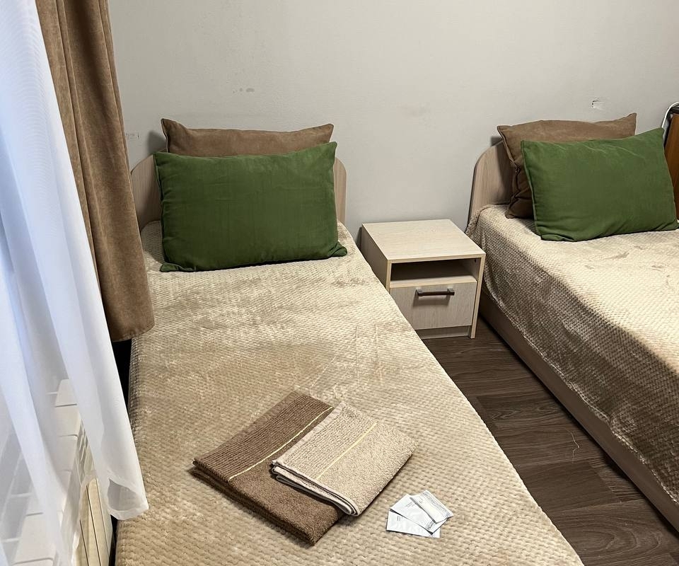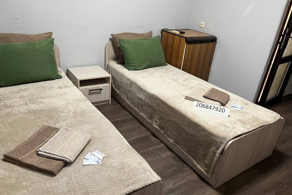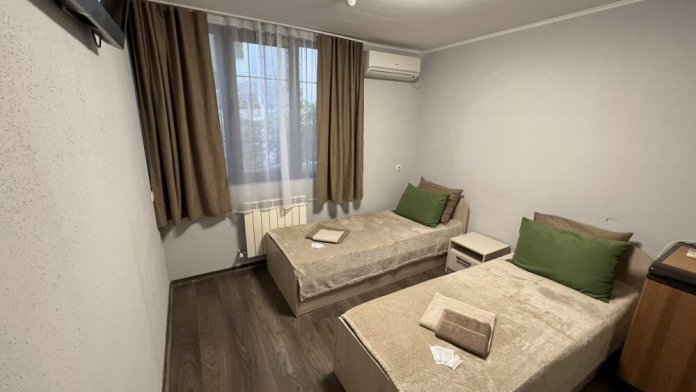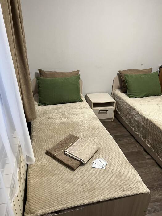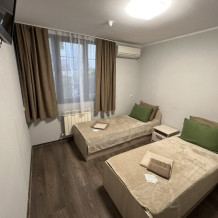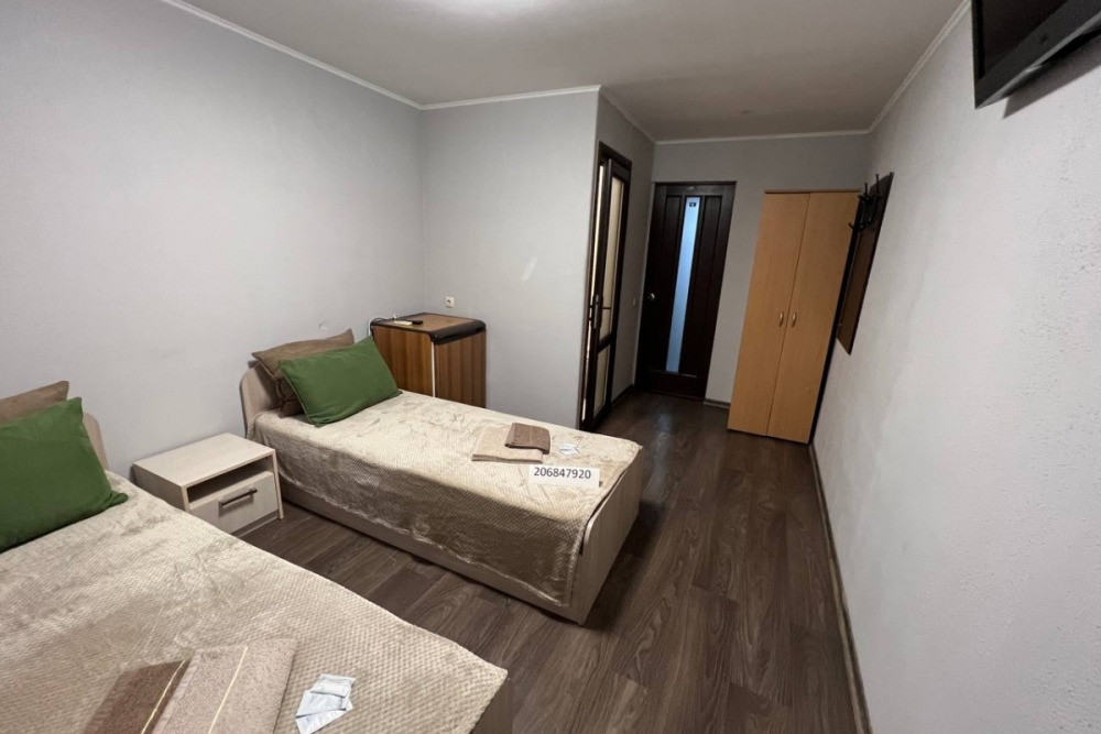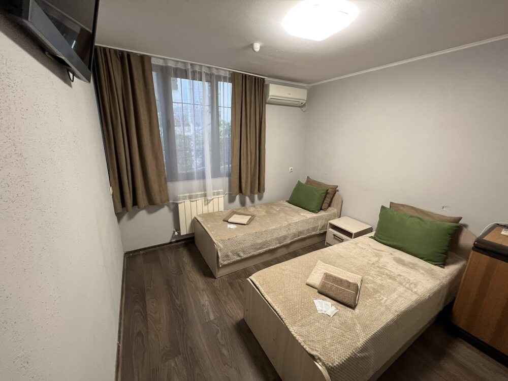 Номер «стандарт» с двумя односпальными кроватями , телевизором, кондиционером, ванной комнатой, с выходом во внутренний двор.