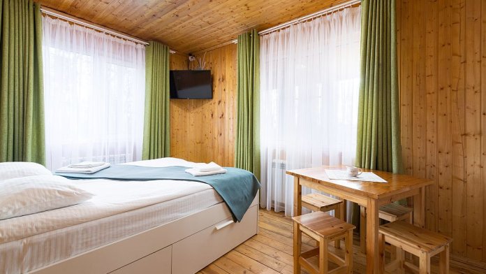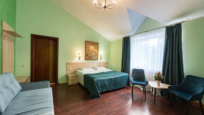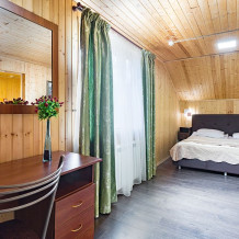 Отдых в уютных номерах небольшого отеля и комфортабельных деревянных коттеджах на лоне большого природного парка снимет будничный стресс, наполнит энергией и вдохновит Вас. Классический рубленый коттедж с собственной сауной и зоной для BBQ или построенный в современной архитектурной концепции - выбор за Вами. 23 номера отеля четырех категорий имеют все современные удобства, оснащены ортопедическими матрасами, мини-баром, телевизорами с плоским экраном, чайниками и кофемашинами. Окна выходят на Оку и на старый парк дома отдыха. Коттеджи вместимостью от 2 до 16 человек оборудованы кухнями с посудомоечными машинами, СВЧ, стеклокерамическими варочными поверхностями, необходимой посудой и феном. Расположенные в лесной зоне отеля, они находятся на значительном удалении друг от друга. Каждый коттедж имеет собственную беседку и мангальную площадку. На территории доступен бесплатный Wi-Fi . Вы можете посидеть с ноутбуком в лесной тиши.