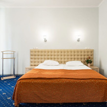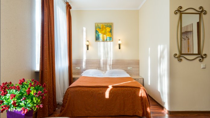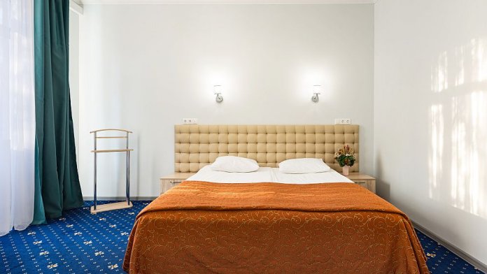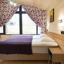 В спальне кровати могут быть раздвинуты или сдвинуты (сверху двуспальный топпер).