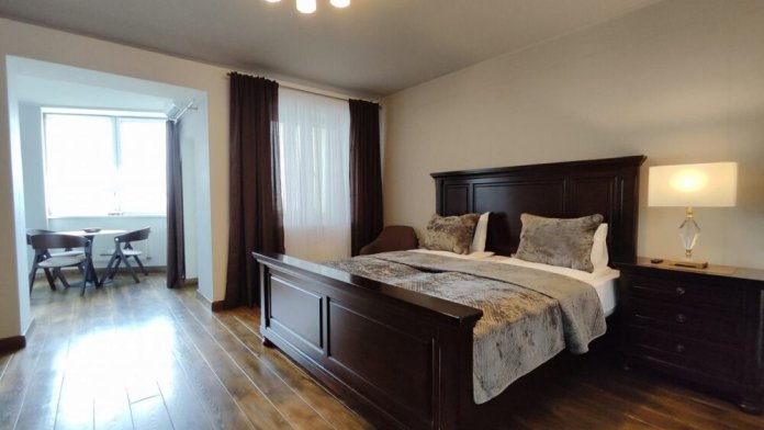 К услугам гостей стильные квартиры, оснащенные мебелью и индивидуальной ванной комнатой. В числе удобств Wi-Fi, телевизор, сплит-система, гладильные принадлежности, набор полотенец, тапочки и фен. Есть лоджия с красивым видом на город и пруд.