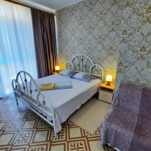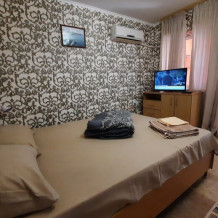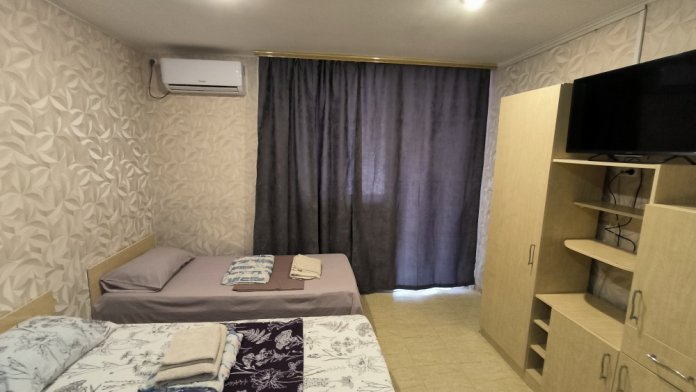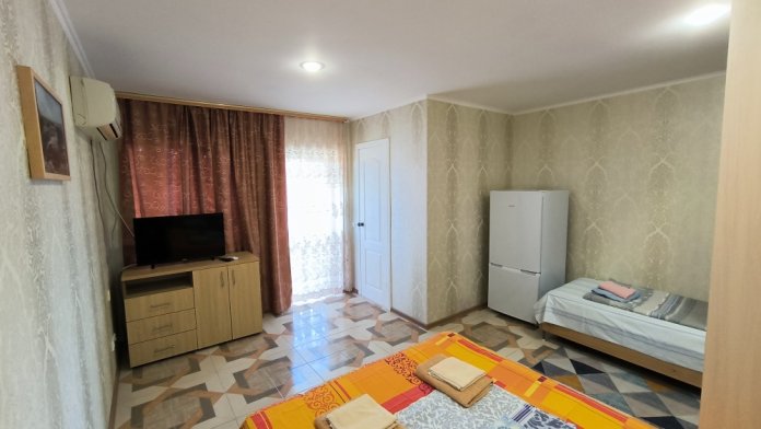 Спасибо огромное за прекрасное жилье на отдыхе в Оленевке. Очень внимательный хозяин, все объяснил, рассказал, месторасположение прекрасное до пляжа 7 минут не быстрым шагом, в отеле можно готовить самим, можно заказать завтраки, обеды и ужины, обедали пару раз в отеле - очень вкусно!!!, борщ отменный. Есть кофемашина, в любое время если попросить. сварят кофе, тоже отменный (зерна не дешевая робуста!). Комната отличная досталась, душ и туалет все прекрасно работало, большой телевизор, кондиционер, удобная двухспальная кровать. При входе в комнату есть небольшое крылечко, крытое, там можно утром кушать, и при этом другие соседи вас видеть не будут, стоит холодильник и столик со стульями. Очень все понравилось, как будто у родственников побывали.