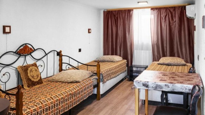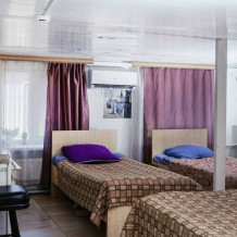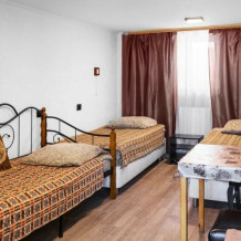 В номере: двуспальная кровать (160 см) и односпальная кровать (90 см) или три раздельные кровати (90 см).