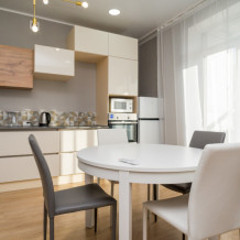 Идеальная чистота, свежее постельное бельё, свежие полотенца, средства гигиены (зубная щетка, паста, шампунь, гель для душа, одноразовые тапочки и многое другое для удобства гостей. Вся необходимая бытовая техника, кровать с ортопедическим матрасом (повышенной твердости), диван-кровать, кондиционер, холодильник, вся необходимая посуда, утюг, гладильная доска, стиральная машина, высокоскоростной без лимитный интернет wi-fi, кабельное ТВ, микроволновая печь, парковочное место на территории (подземный теплый паркинг 300 рублей/сутки).