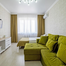 В наших апартаментах Вы сможете насладиться размеренным отдыхом, забыв о повседневной суете, отвлечься от работы, отдохнуть и набраться сил. Для этого в квартире есть все условия - большая кровать с ортопедическим матрасом и качественным постельным бельем, шторы задерживающие дневной свет, тишина и домашний уют.