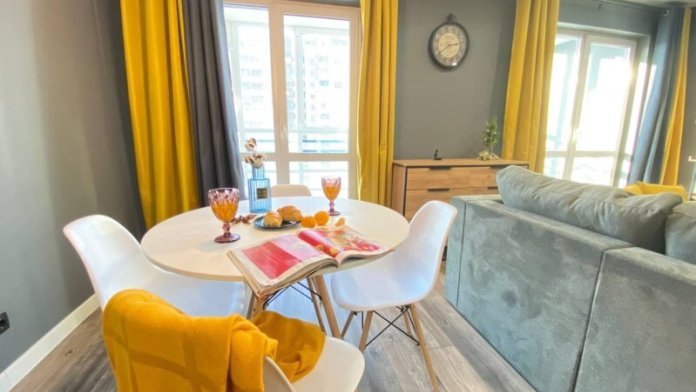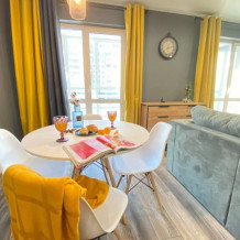 Вся необходимая бытовая техника, кондиционер, посудомоечная машина, двуспальная кровать king size с ортопедическим матрасом, диван-кровать, холодильник, вся посуда, утюг, гладильная доска, стиральная машина, высокоскоростной интернет wi-fi, спутниковое ТВ, микроволновая печь, по запросу (возможно предоставление детской кроватки или дополнительного спального места). Охраняемая территория с собственной парковкой обеспечат спокойствие за автомобиль и гуляющих во дворе детей