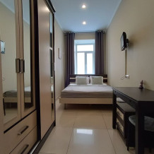Предлагаем Вам уютную 1-местную комнату со всем необходимым для комфортного отдыха. Комнаты выполнены в классических тонах. Кровать с ортопедическим матрацем и качественным бельём окутают Вас уютом. Полотенца, по 2 шт. Потолки 3 метра.
