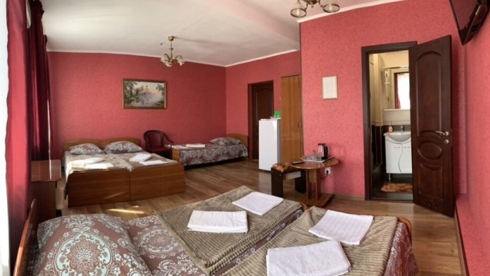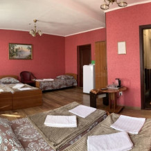Все комнаты нашего дома удовлетворяют требованиям как для индивидуального, так и семейного отдыха. Чистота и порядок комнат приятно Вас удивят. В комнатах ламинат, кровати, шифоньер, туалетный столик, зеркало, диваны, кондиционеры, цифровое эфирное телевидение, выход в интернет (Wi-Fi).