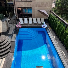 На придомовой территории есть открытый бассейн, зона барбекю, зона отдыха.