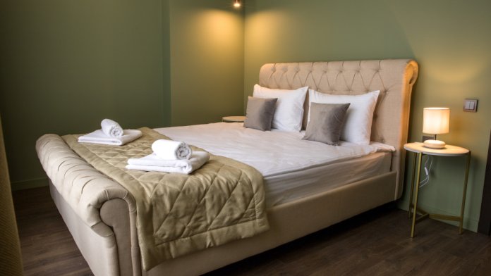 - Удобная двуспальная кровать (или 2 составленных одноместных кровати);