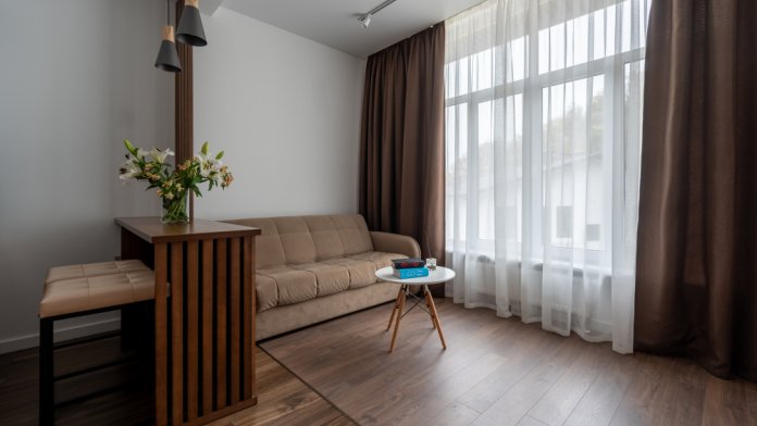 Комплекс предлагает гостям несколько категорий современных комфортных номеров, полностью оборудованных для проживания в любой сезон. Имеются двухуровневые апартаменты и апартаменты с собственной зоной барбекю.