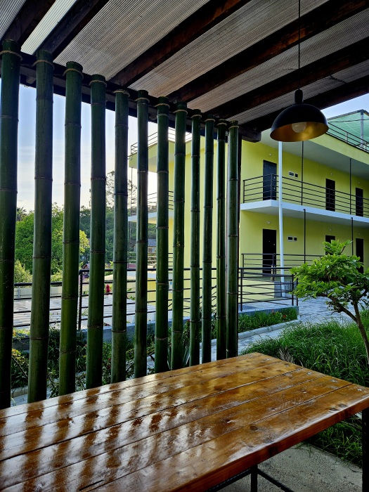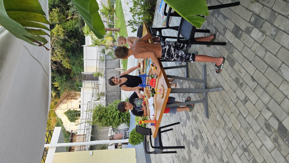 В которой приятно находиться и в жару и в плохую погоду. На улице тоже есть обеденная зона (столики под тентами).