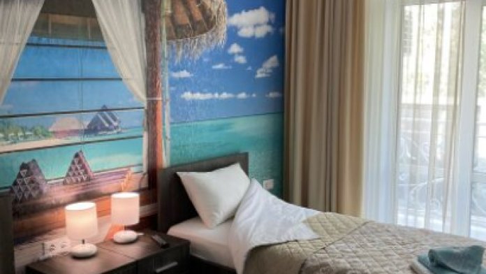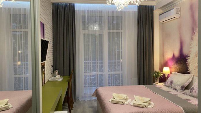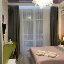 Комфортный двухместный номер находится на 2 этаже. В номере есть балкон, ванная комната с душевой кабиной и набором косметических средств, фен, телевизор, кондиционер, электрочайник и посуда, холодильник, WI-FI.