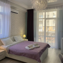 Комфортный двухместный номер находится на 2 этаже. В номере есть балкон, ванная комната с душевой кабиной и набором косметических средств, фен, телевизор, кондиционер, электрочайник и посуда, холодильник, WI-FI. На 1 этаже находится общая кухня, а во дворе дома мангальная зона с мебелью.