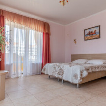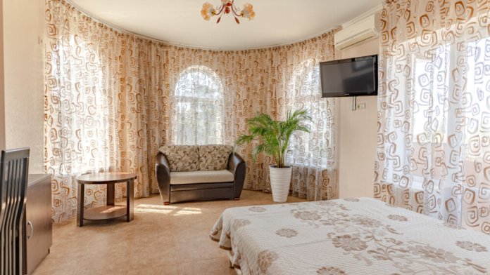 На территории гостевого дома есть летняя кухня-веранда, оснащенная всем необходимым для самостоятельного приготовления пищи. Из окон открывается красивый вид на море и самую высокую точку черного побережья гору Ахун. Для размещения предлагаются номера разной категории, с различной вместимостью. Здесь всегда убрано и царит благоприятная атмосфера для отдыха.