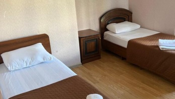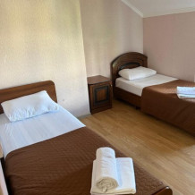 В номере: 2 односпальные кровати. Имеется телевизор, кондиционер, отопление, вешалка для одежды, комод.